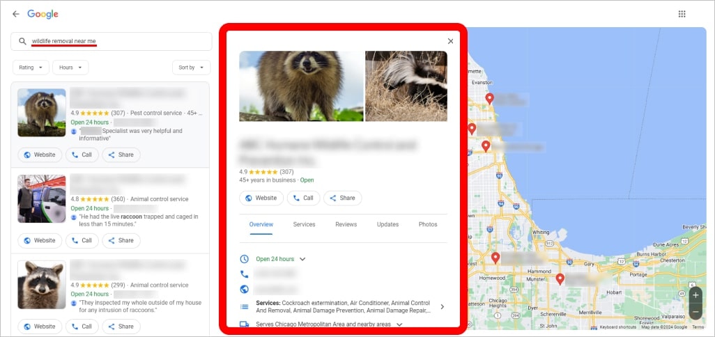 This, combined with accurate and comprehensive local listings, ensures that when someone in your service area searches for wildlife removal services, your company appears prominently in the results, making it easy for them to choose you over competitors.