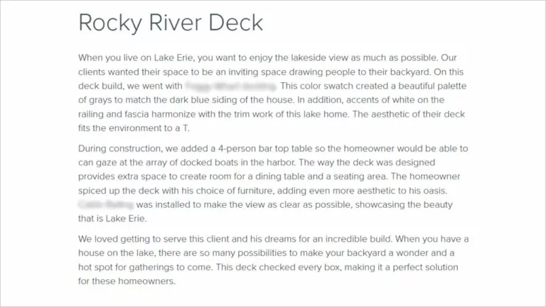 Compelling content is at the heart of successful SEO for deck building companies. Your website should showcase your expertise and establish your authority in the industry. Create informative, engaging content that showcases your deck building business through custom deck designs, outdoor living space transformations, and professional deck installation projects. Use high-quality images, videos, and detailed descriptions to highlight the unique features and challenges of each project.