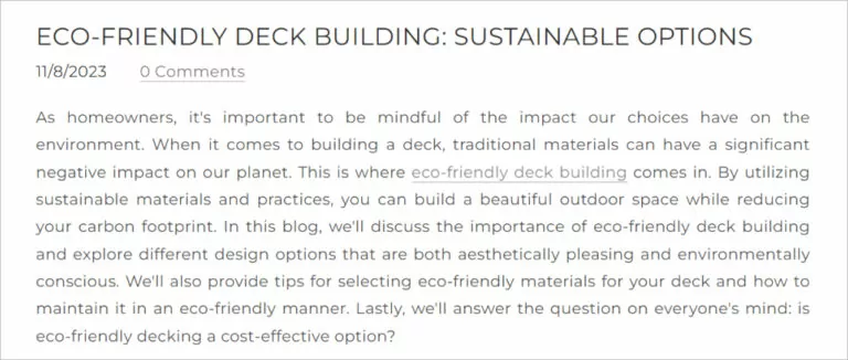 For instance, if you’ve recently completed a unique deck project using sustainable materials, you could write a guest post for an eco-conscious home improvement blog. In the article, showcase your project and expertise while including a backlink to your website for readers interested in learning more. Quality backlinks from authoritative sources can significantly improve your website’s SEO and credibility.