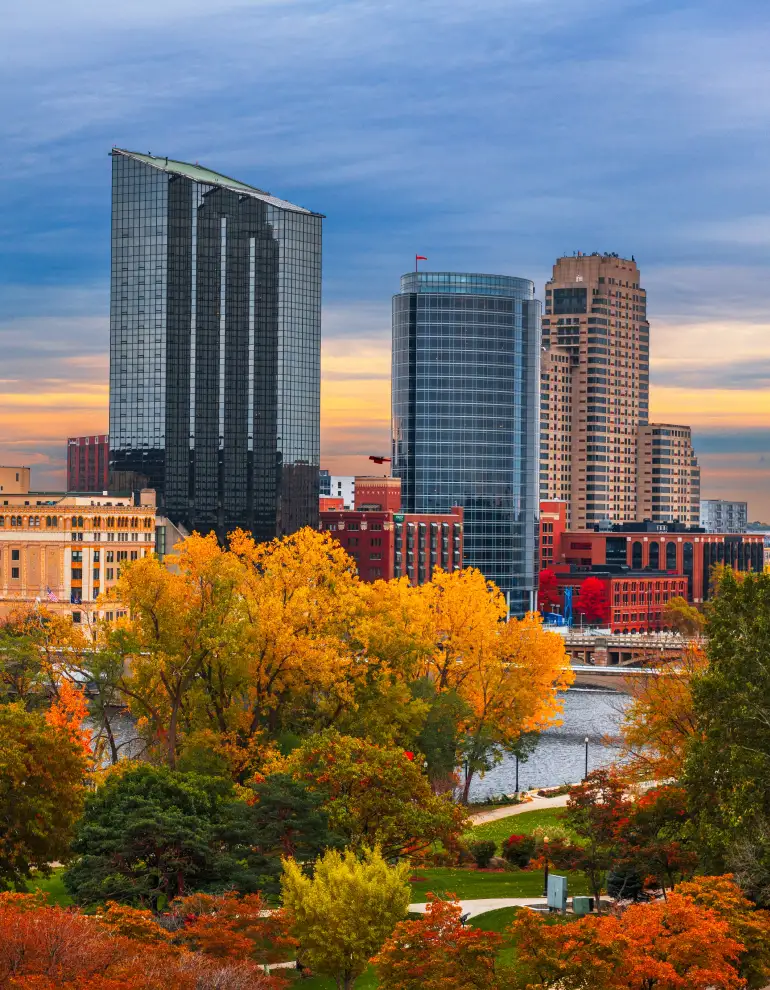 Known as “Furniture City,” Grand Rapids, Michigan is a vibrant economic hub along the Grand River. The city is home to iconic landmarks such as the Gerald R. Ford Presidential Museum, Frederik Meijer Gardens & Sculpture Park, and the Grand Rapids Art Museum. Its lively downtown, cultural institutions, and rich architectural heritage make it a dynamic environment for innovation and business growth.