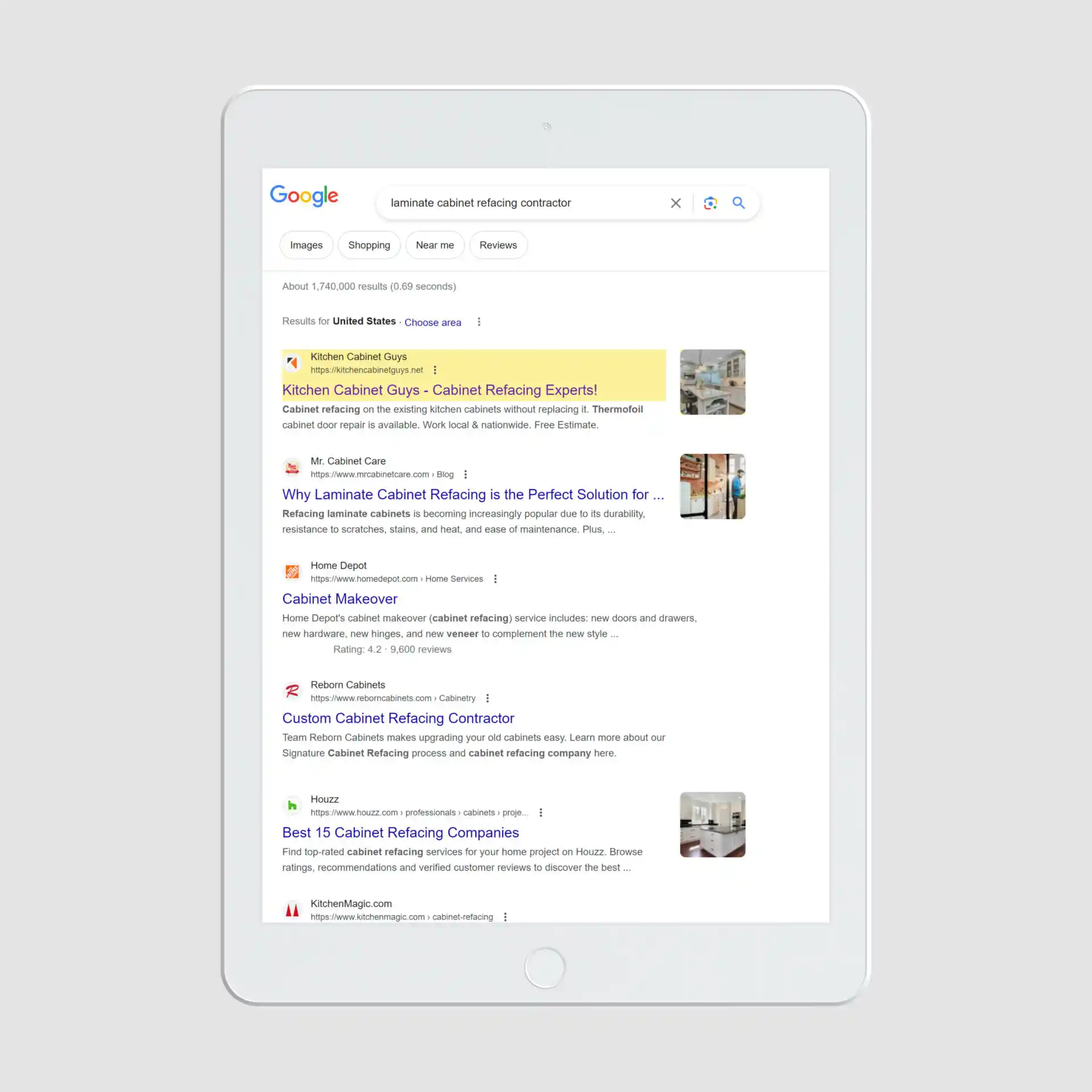 To enhance their PPC campaign, we performed keyword research to target relevant and high-converting keywords. We also optimized ad copy and landing pages, implementing A/B testing to continuously improve campaign performance. This collaborative effort resulted in Kitchen Cabinet Guys establishing themselves as a leading cabinet contractor in Chicago, achieving top local results.